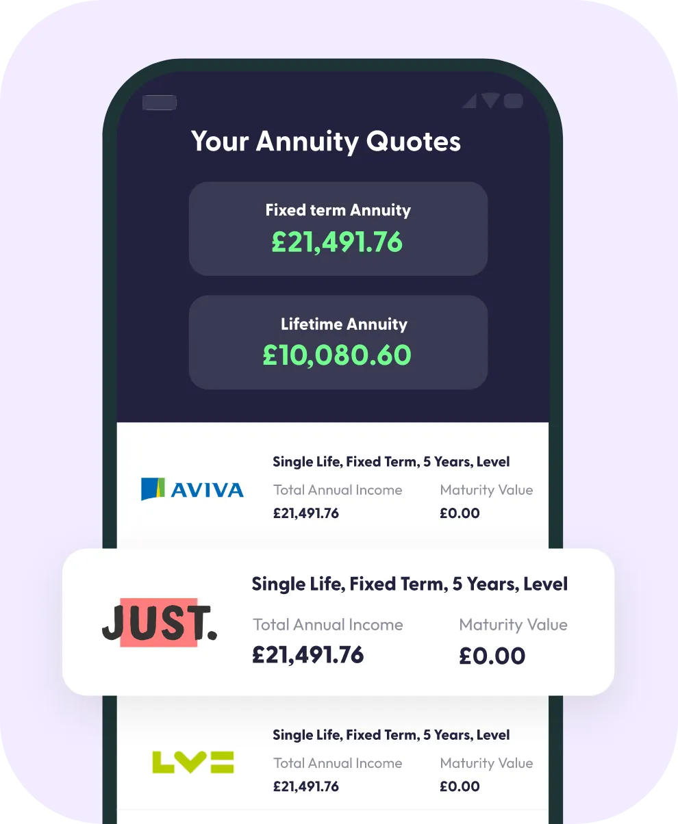You’ll need to share details like your age, postcode, whether you smoke and if you have any medical conditions as these will affect your annuity income. We also need some contact details so we can get in touch with information about your quotes.