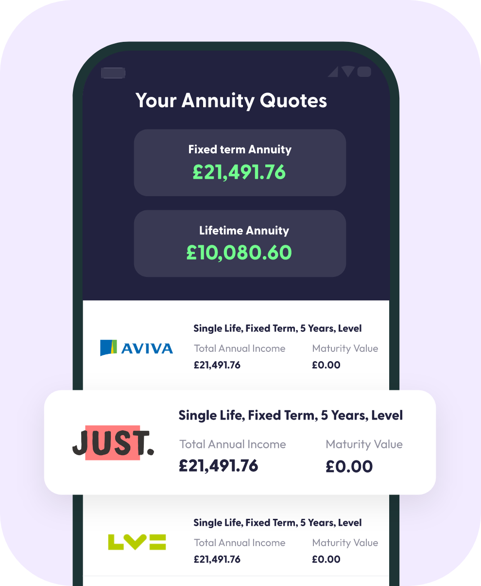 You’ll need to share details like your age, postcode, whether you smoke and if you have any medical conditions as these will affect your annuity income. We also need some contact details so we can get in touch with information about your quotes.
